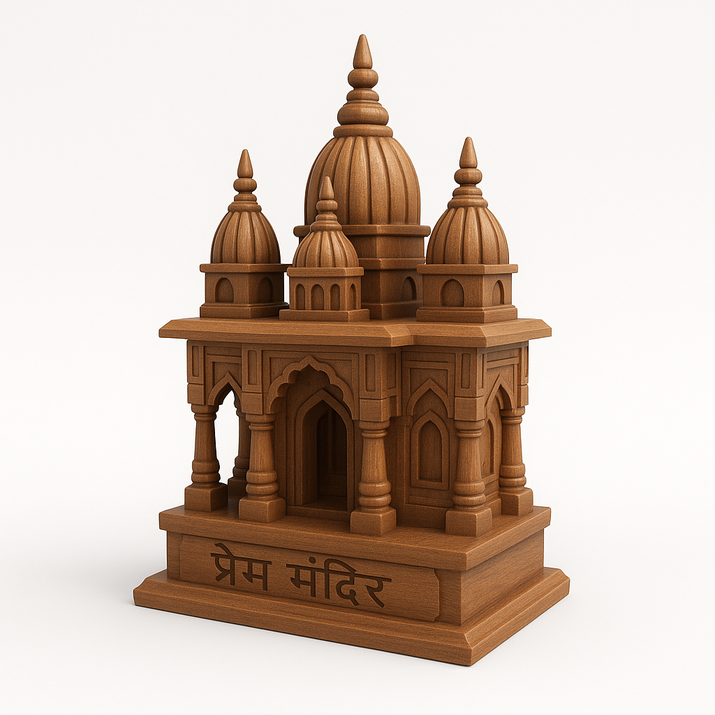 Wooden Hand Carved 3D Miniature Prem Mandir Temple